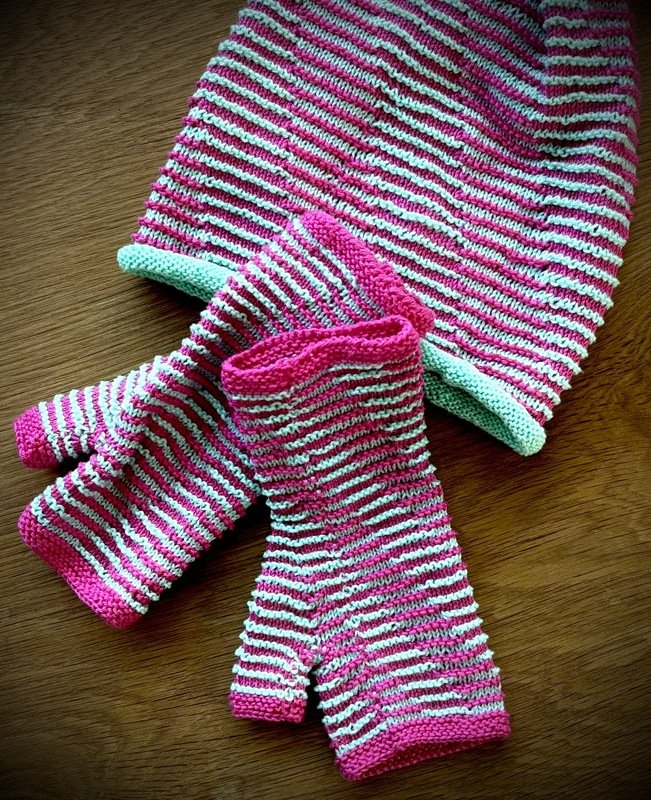 Je nach Strickstil reichen für die Mütze in der Regel sogar 25g Garn/Farbe. Du kannst also aus dem restlichen Garn sogar noch Armstulpen im passenden Muster stricken. Die Anleitung findest du ebenfalls auf dem Portal „Crazypatterns“, sie heisst: „Armstulpen Stripes Illusionsstricken“.
