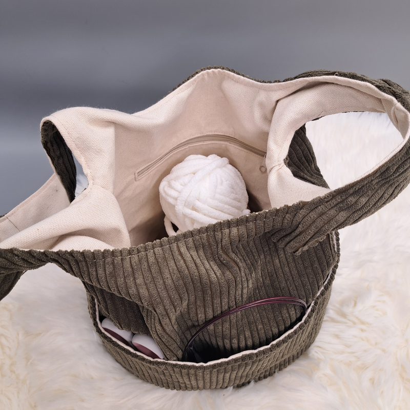 Der Satte WollSchlingeL bietet Platz satt! Außerdem hat er eine clevere Einteilung, wie ein Steck- und Reißverschlussfach außen und ein Wollfach innen. Das Wollfach gibt dir die Möglichkeit, z.B. zweifarbig zu stricken, denn die beiden Fächer halten die Knäuel an Ort und Stelle, damit sie nicht durcheinanderpurzeln.