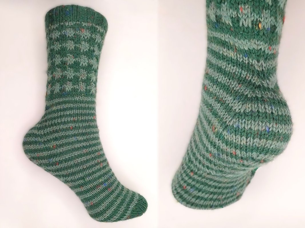 Feburar- Socke Harlekin, Top Down, Fixe Quicky Ferse, zweifarbig, 6-fach Sockenwolle