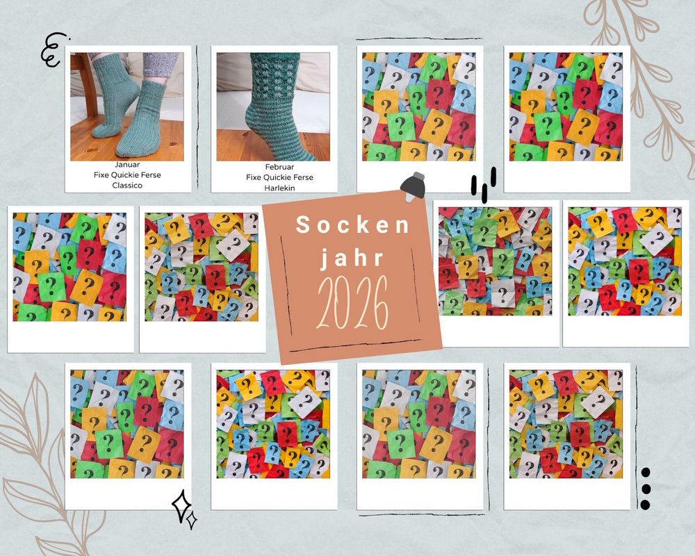 Erlebe 12 Monate kreative Sockenvielfalt! Mit dem Sockenjahr 2026 erhältst du jeden Monat ein brandneues, exklusives Sockendesign als PDF-Download – perfekt für alle, die das ganze Jahr über Inspiration und Abwechslung beim Sockenstricken lieben.