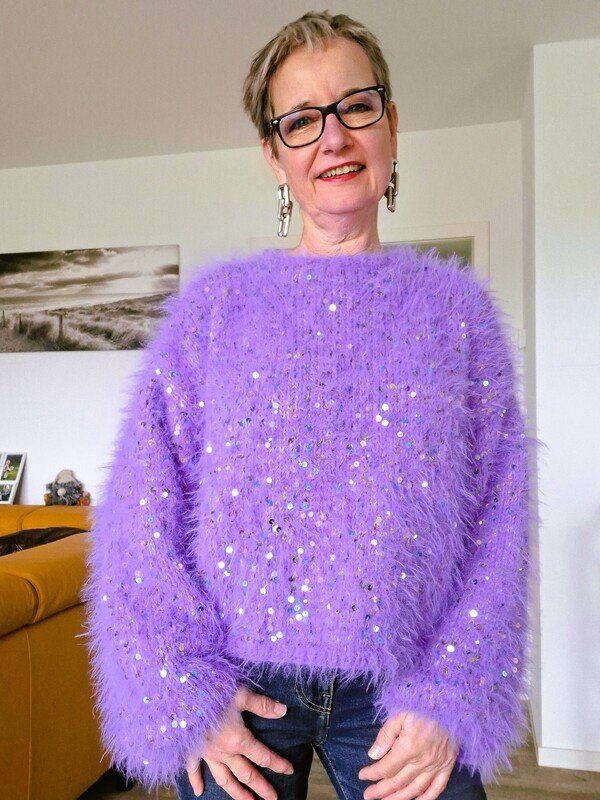 Stricke deinen eigenen Kuschelpullover mit Pailletten in der Große 36/38 (40/42)