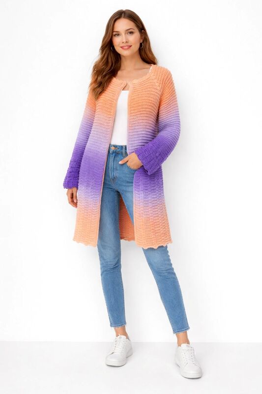 Die Jacke kann in uni oder im Farbverlauf gehäkelt werden.