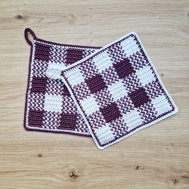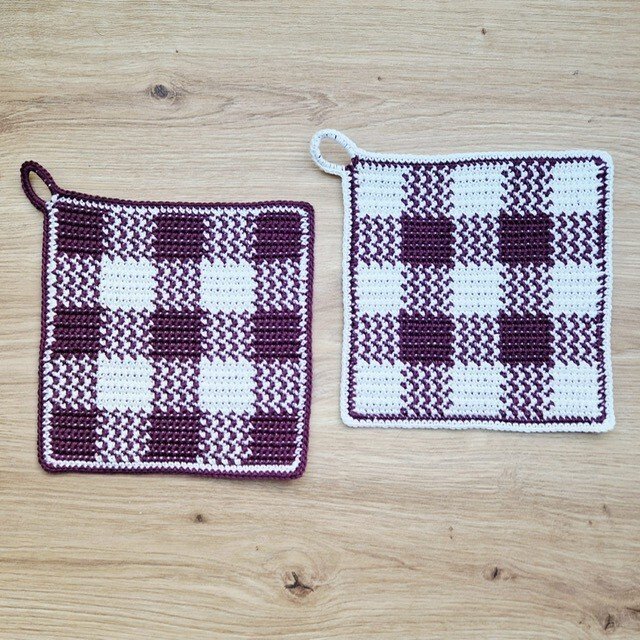 Diese Topflappen sind der Klassiker unter den gehäkelten Topflappen. Sie schützen die Hände nicht nur vor z.B. zu heißen Topfgriffen, sondern sie verschönern auch jede Küche. Gleichzeitig können sie auch als Untersetzer verwendet werden.