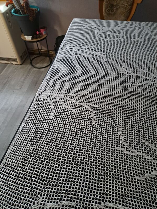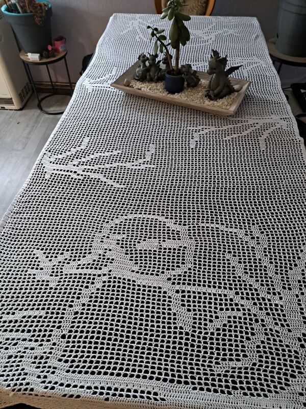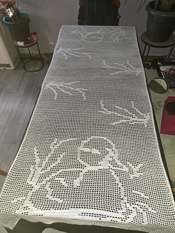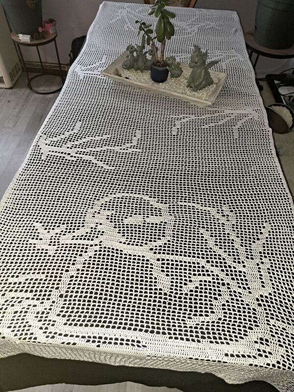 Die Tischdecke kann auch individuell etwaws kürzer gehäkelt werden, wie das geht, ist in der Anleitung beschrieben