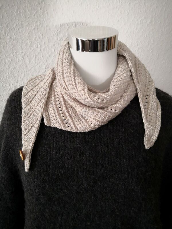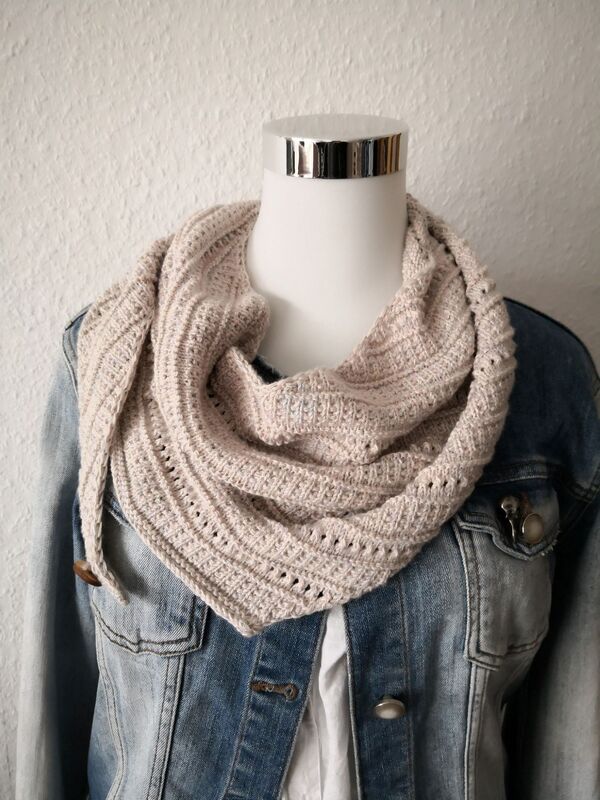 Das Tuch kann kleiner, aber auch größer gearbeitet werden, je nachdem wieviel Garn du verwendest.
