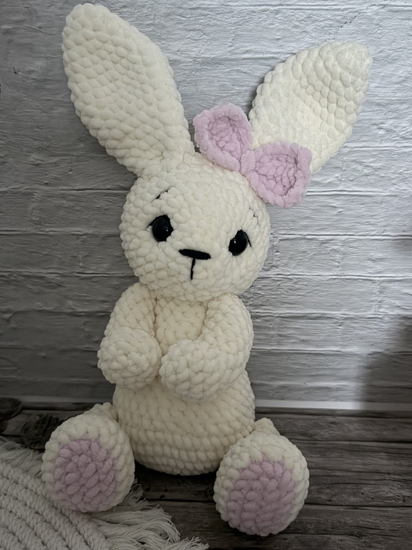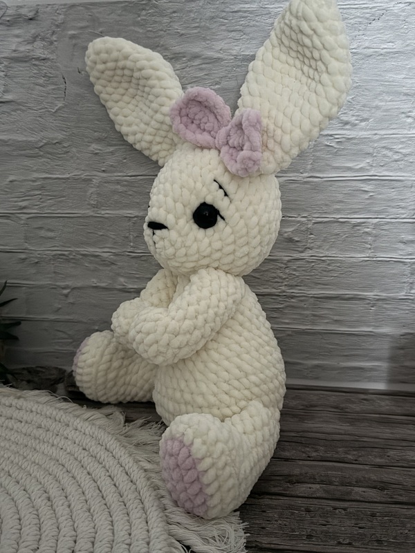 Der fertige Hase wird besonders weich und knuffig. Mit seinem harmonisch gestalteten Körper, den langen Schlappohren und dem niedlichen Gesicht ist Nini ein echter Blickfang – perfekt zum Liebhaben und Dekorieren.