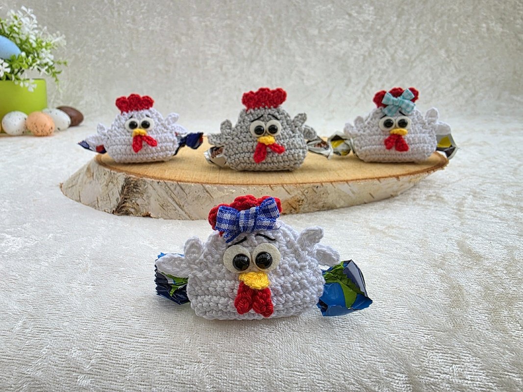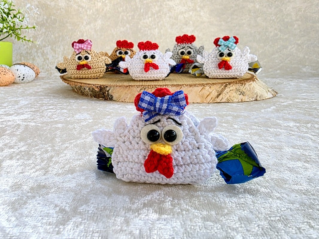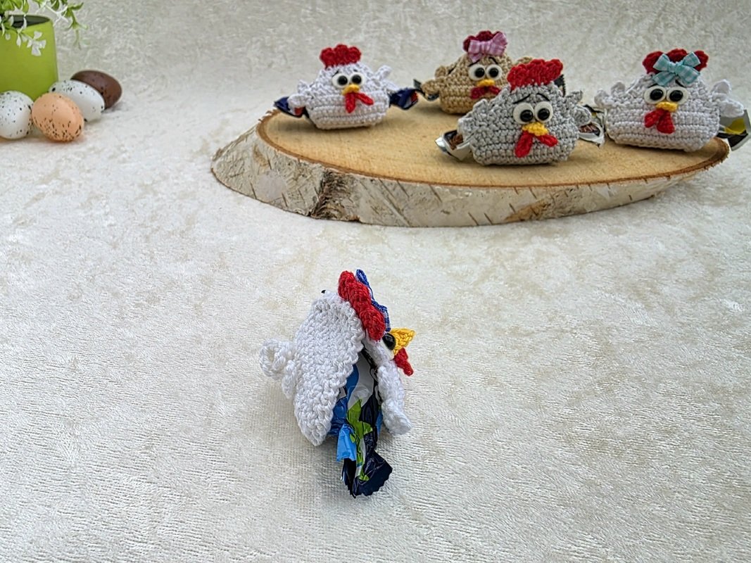 Dieses niedliche Huhn ist eine tolle Dekoration und gleichzeitig eine praktische Geschenkverpackung für Süßigkeiten oder kleine Überraschungen. Es ist schnell gehäkelt und eignet sich wunderbar als Mitbringsel oder für den Ostertisch.