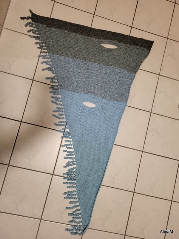 Du kannst dein Spiralli Flow in jeder beliebigen Größe arbeiten. Der Prototyp wurde mit gerade mal 460 m, gearbeitet und ergab eine Größe von 115 x 50 cm.
