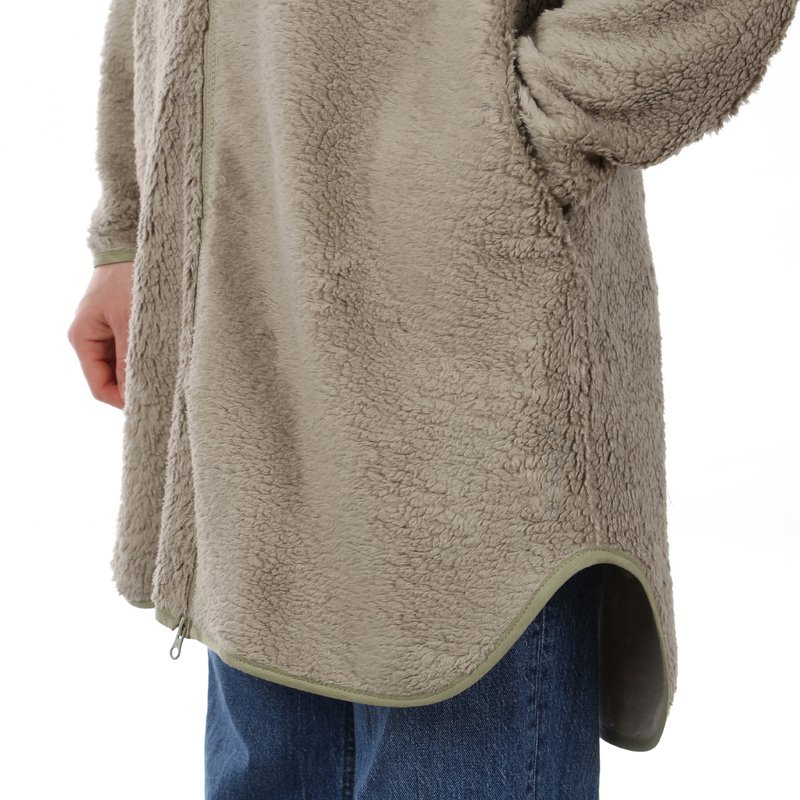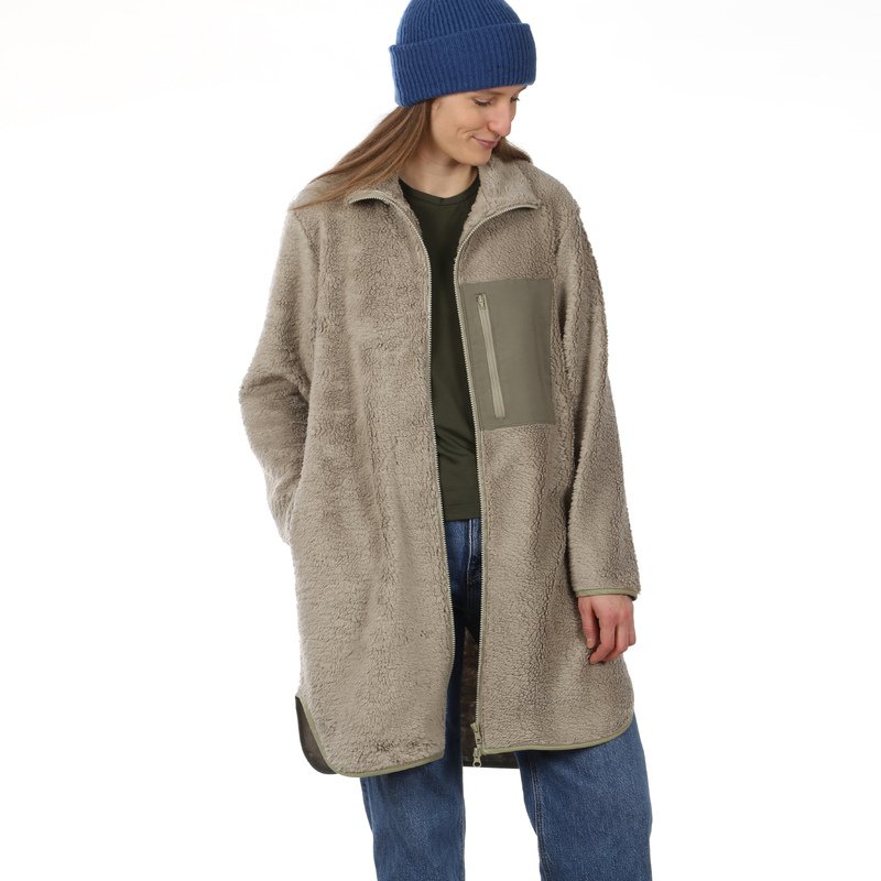 Mit FRAU MOA nähst du dir einen knielangen Fleecemantel, der Funktionalität und Style perfekt verbindet. Der geschwungene, nach hinten verlängerte Saum sorgt für eine moderne Silhouette. Besonders praktisch – und gleichzeitig ein schönes Design-Statement – ist die große Brusttasche mit Reißverschluss. Du kannst sie farblich absetzen und deinem Mantel so eine ganz persönliche Note verleihen. Zusätzlich bieten die Seiteneingriffstaschen Platz für kalte Hände. Saum und Ärmelsaum sind mit Schrägband eingefasst und geben dem Mantel einen hochwertigen, sauberen Abschluss.