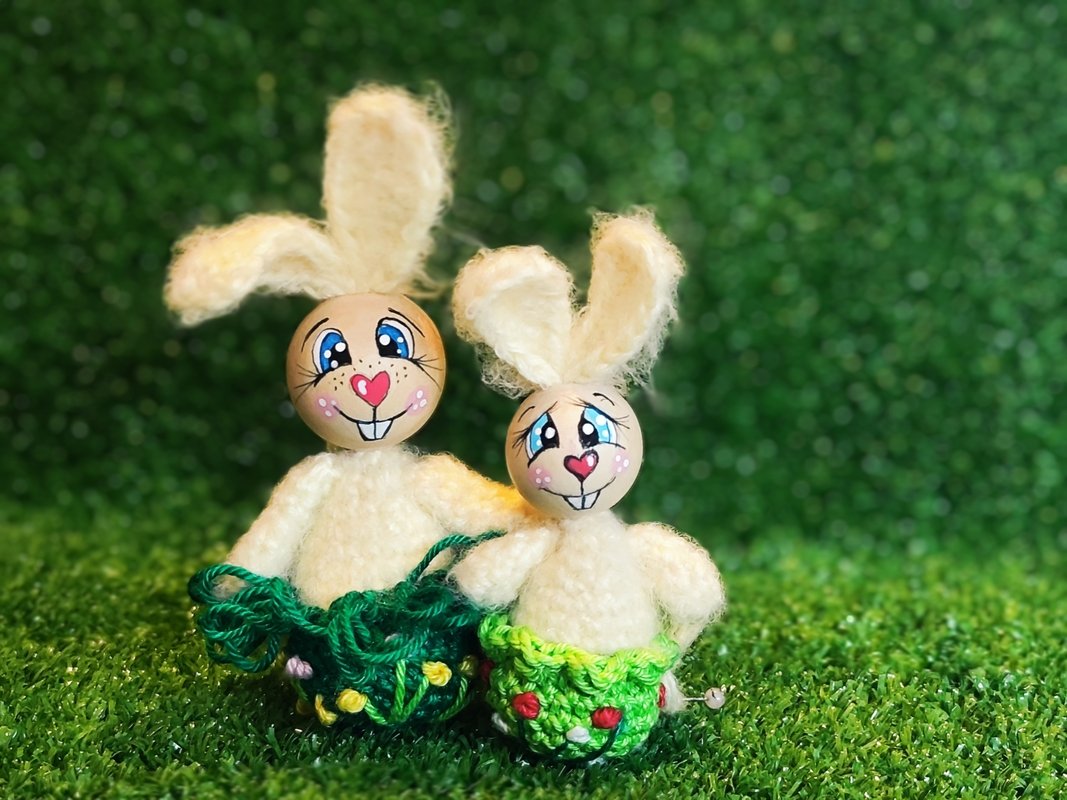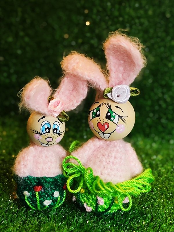 Häkelanleitung Schaf und Häschen in der Wiese für Holzkugeln in je 2 Größen