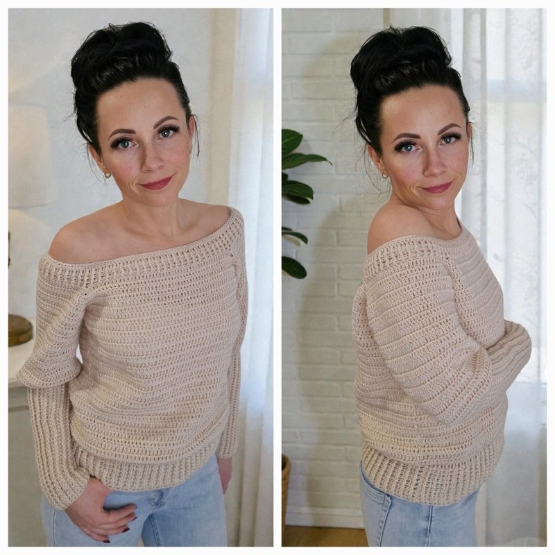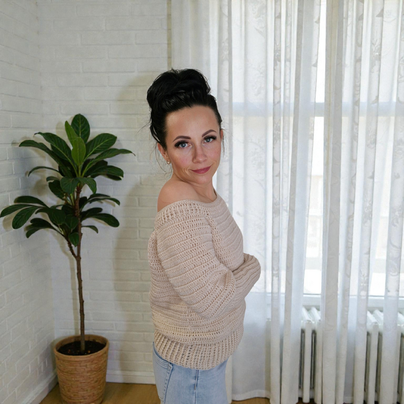 Du kannst den Pullover während des Häkelns jederzeit anprobieren und individuell an deine Figur anpassen.