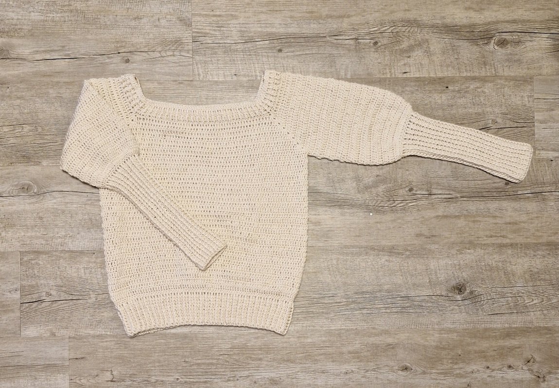 Der Pulli kann in jeder beliebigen Größe gehäkelt werden.