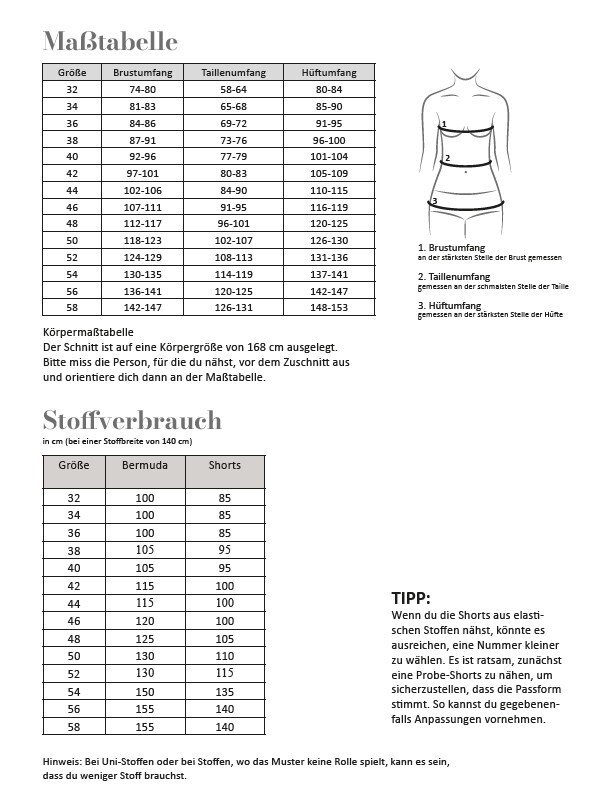 Der Schnitt ist für Nähanfängerinnen sowie für fortgeschrittene Hobbyschneiderinnen geeignet.