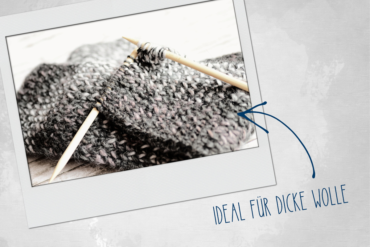 Dicke Wolle, Stricknadeln in entsprechender Stärke (empfohlene Nadelstärke passend zum Garn), Schere, Wollnadel zum Vernähen der Fäden