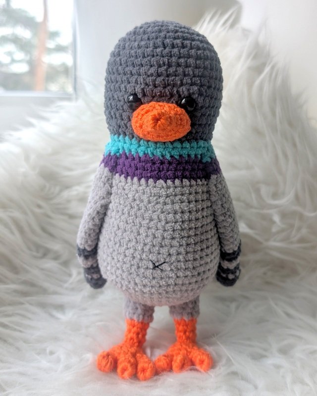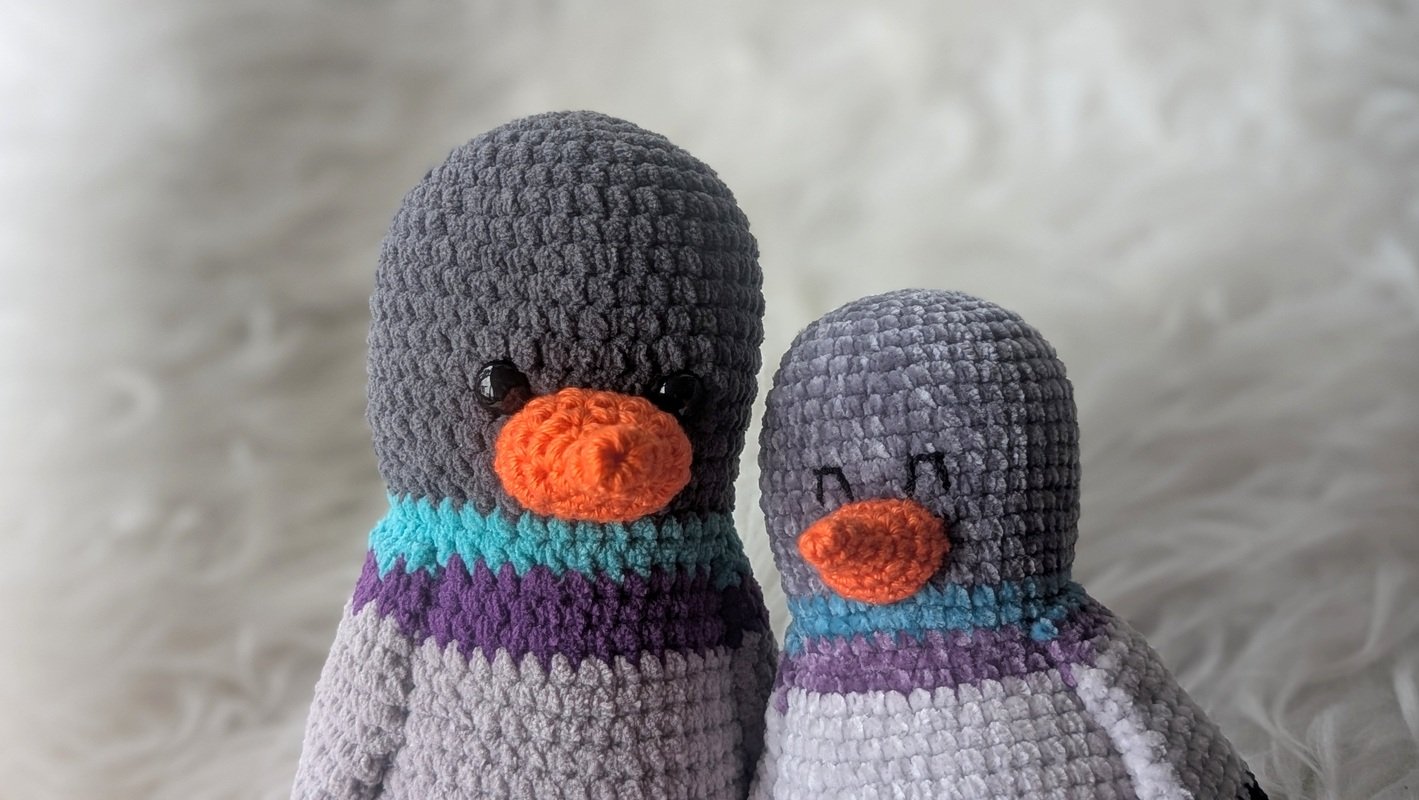 Wenn du mit dem in der Anleitung angegebenem Garn häkelst, werden deine Tauben ca. 15 oder 24cm hoch.