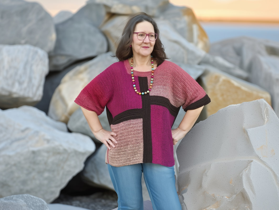Die GlitzerKante besteht aus vier Flächen, die mal in der Länge und mal quer gehäkelt werden. Genau dieses Spiel mit der Richtung sorgt für die markante Linienführung.