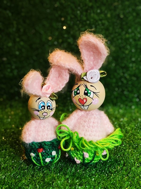 Mit dieser Anleitung zeige ich dir, wie du diese lustigen Hasen in 2 Größen häkeln kannst.