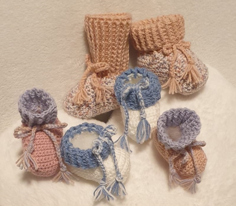 Die Schühchen sind nahtlos an einem Stück gehäkelt – hat man das erste einmal angefertigt, lässt sich dieses Modell schnell und ohne Anleitung, ohne kompliziertes Zählen bei jeder Gelegenheit häkeln.