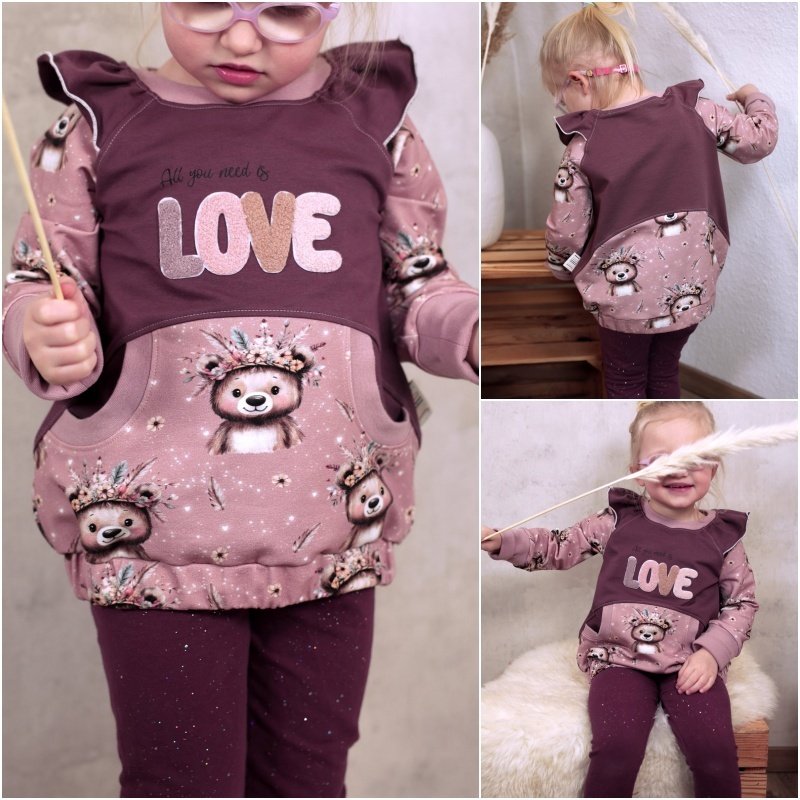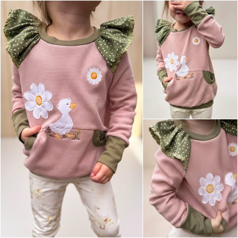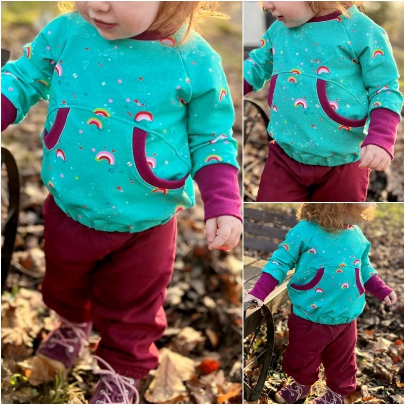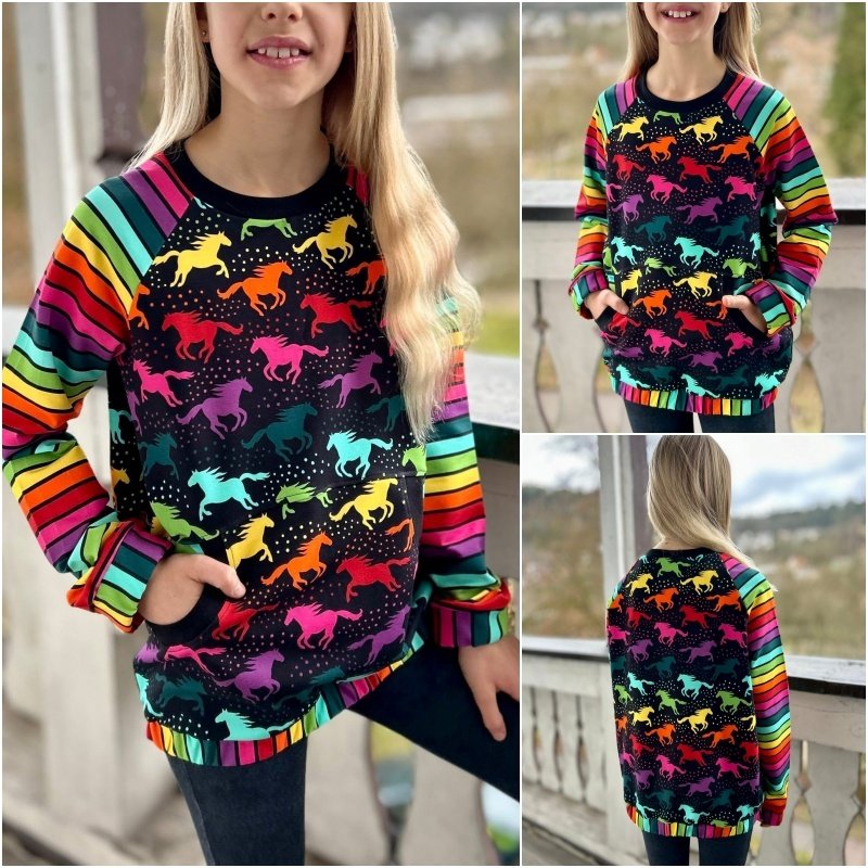 Das Schnittmuster SpringdaySweater ist ein bequemer, lockerer Raglansweater mit tollen Varianten und einfacher Umsetzung. Schnell genäht entstehen hier richtig coole Werke, die immer wieder neu gestaltet werden können! Mit dabei sind z.B. Teilungen beim Vorder- und Rückteil sowie den Ärmeln. Beim Vorderteil kann die Teilung mit Taschen ergänzt werden. Die beiden langen Ärmelversionen bieten dir einmal einen Abschluss mit Gummibund und einmal einen Abschluss mit etwas längerem Bündchen. Aufgepeppt werden die Ärmel durch optionale Flügelchen, die jedem Sweater einen absolut süßer Look verleihen. Der generelle Abschluss des Sweaters wird mit einem Bund und eingezogenem Gummiband genäht. Durch die Raglankonstruktion bietet sich das Schnittmuster wunderbar an, schöne Panele, Paspeln oder z.B. dehnbare Spitzen als Highlights hervorzuheben. So können coole, freche aber auch verspielte Versionen entstehen, die niemals langweilig werden.