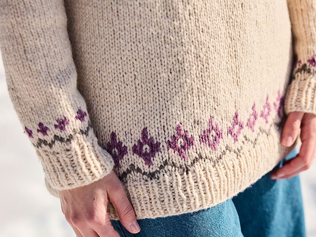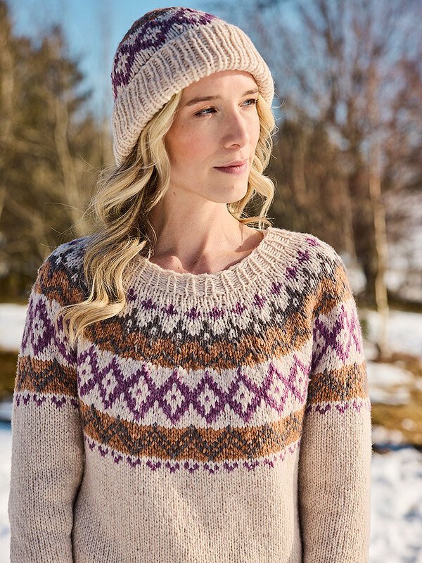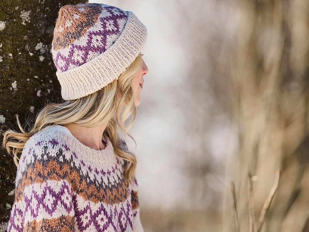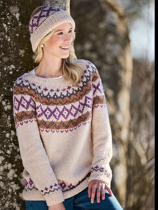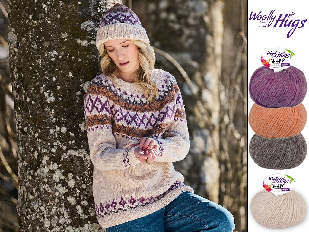 Zeitlose Islandpullis und passende Mützen aus hochwertiger Schurwolle. Die markanten Jacquard-Muster und die natürliche Thermofunktion der Woolly Hugs SHEEP machen dieses Set zum perfekten Begleiter für kalte Tage – rustikal, authentisch und direkt zum Losstricken.