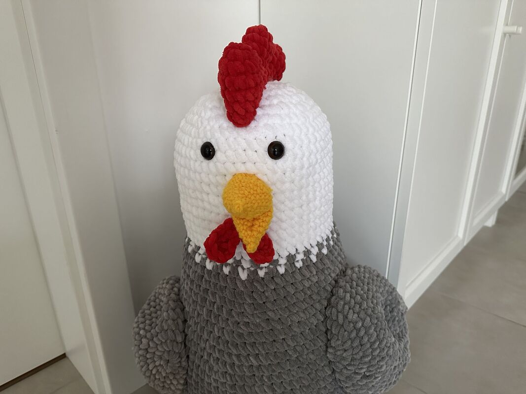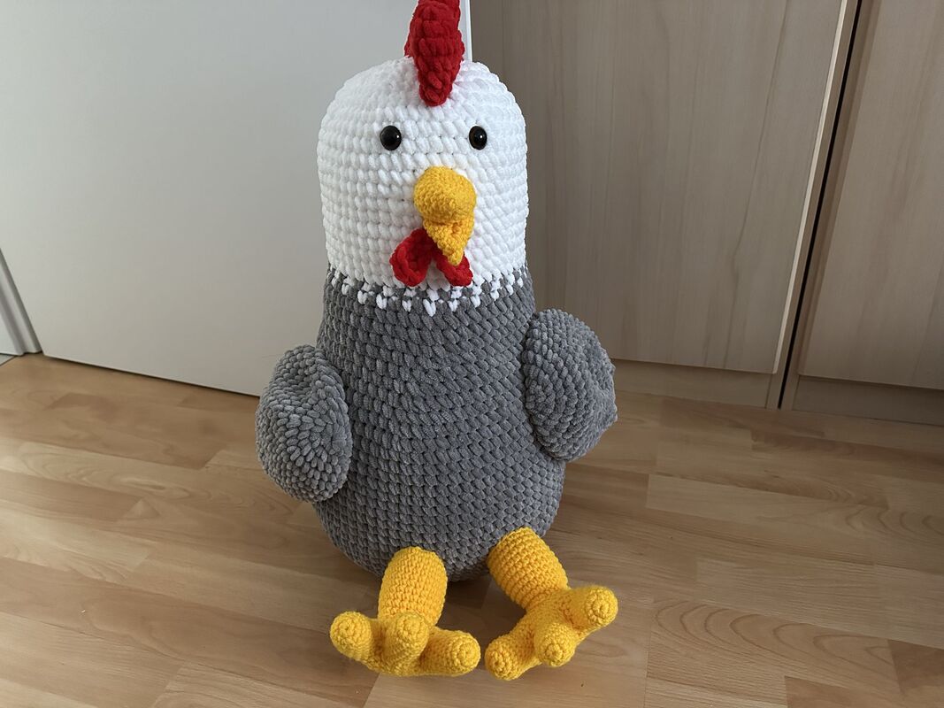 Unter Verwendung des angegebenen Materials wird Heli Henne ca. 55 cm hoch.
