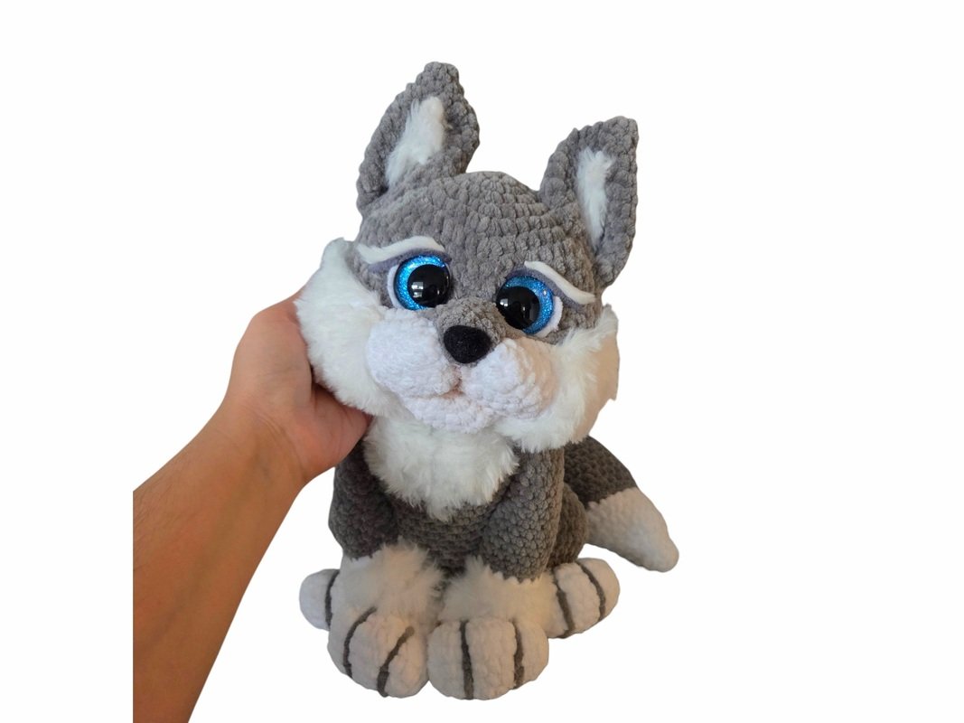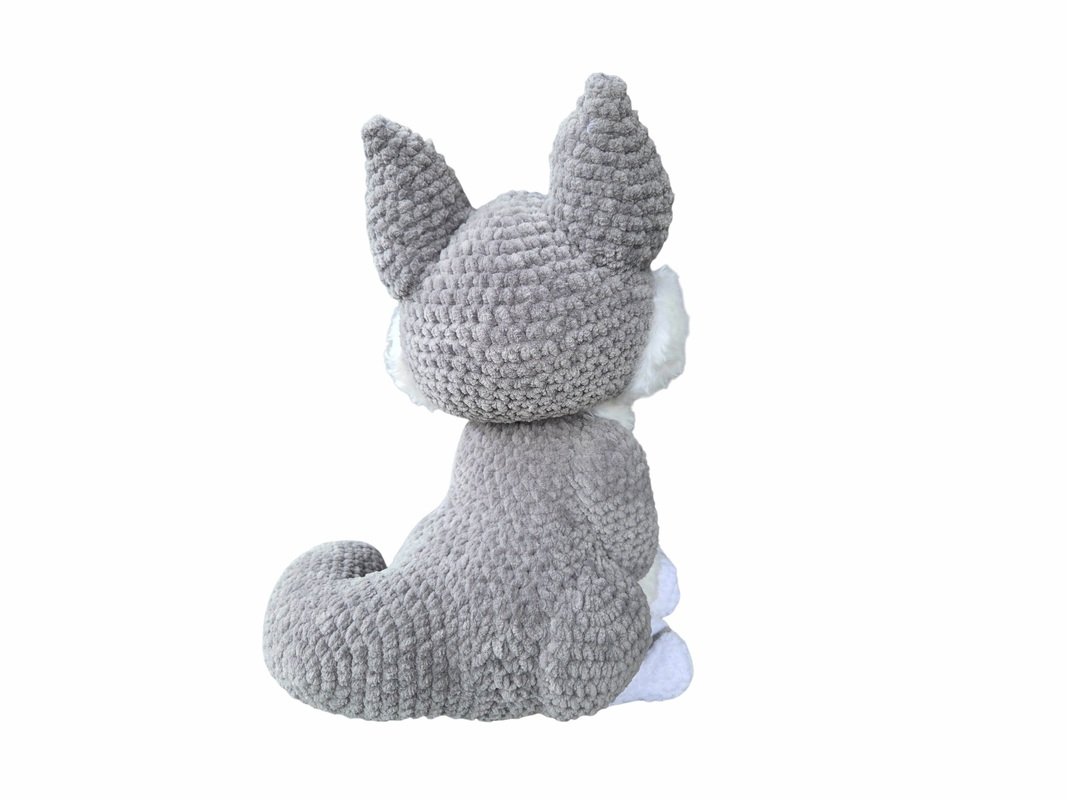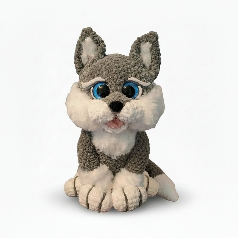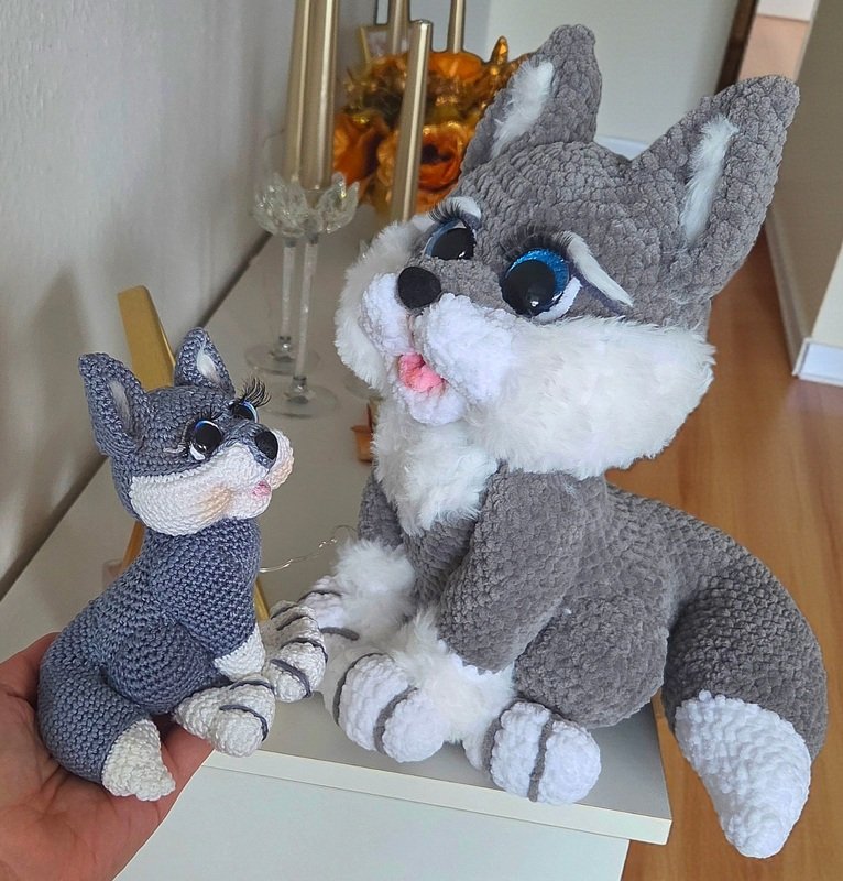 Mit dieser liebevoll gestalteten Häkelanleitung kannst du denselben Wolf in unterschiedlichen Optiken anfertigen. Die gezeigten Varianten wurden exakt nach der gleichen Anleitung gearbeitet. Der unterschiedliche Look entsteht ausschließlich durch die Wahl des Garns und durch optionale Details. Die feste Variante wird mit Baumwollgarn gehäkelt und wirkt dadurch klar, kompakt und formstabil. Die weiche, flauschige Variante entsteht durch die Verwendung von Chenillegarn. Optional kann bei beiden Varianten zusätzlich Fellwolle eingesetzt werden, um einzelne Bereiche noch weicher oder strukturierter zu gestalten. Der Wolf kann zudem mit oder ohne Wimpern sowie mit oder ohne Rouge gefertigt werden. Die in der Anleitung enthaltenen Detailfotos zeigen die Chenillevariante, da sich einzelne Arbeitsschritte damit besser veranschaulichen lassen (z.B. das Modellieren). Die Anleitung selbst ist jedoch für beide Garnarten identisch und problemlos auf die Baumwollvariante übertragbar.