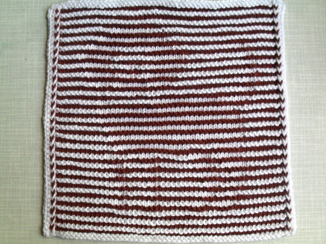 Benötigt wird Baumwollgarn in zwei Farben, gesamt ca. 40 Gramm. Ich habe meine Anleitungen mit Catania, Cotone von Lanagrossa, Limone von Schöller und Stahl, Ibiza von Twister oder Baumwolle von Sostrene greene und von Mayflower gestrickt, je nachdem, wo mir die Farben am besten gefallen haben. Die Nadelstärke ist 2 1/2 oder 3, je nach Material und Strickweise, es muß sehr fest gestrickt werden!