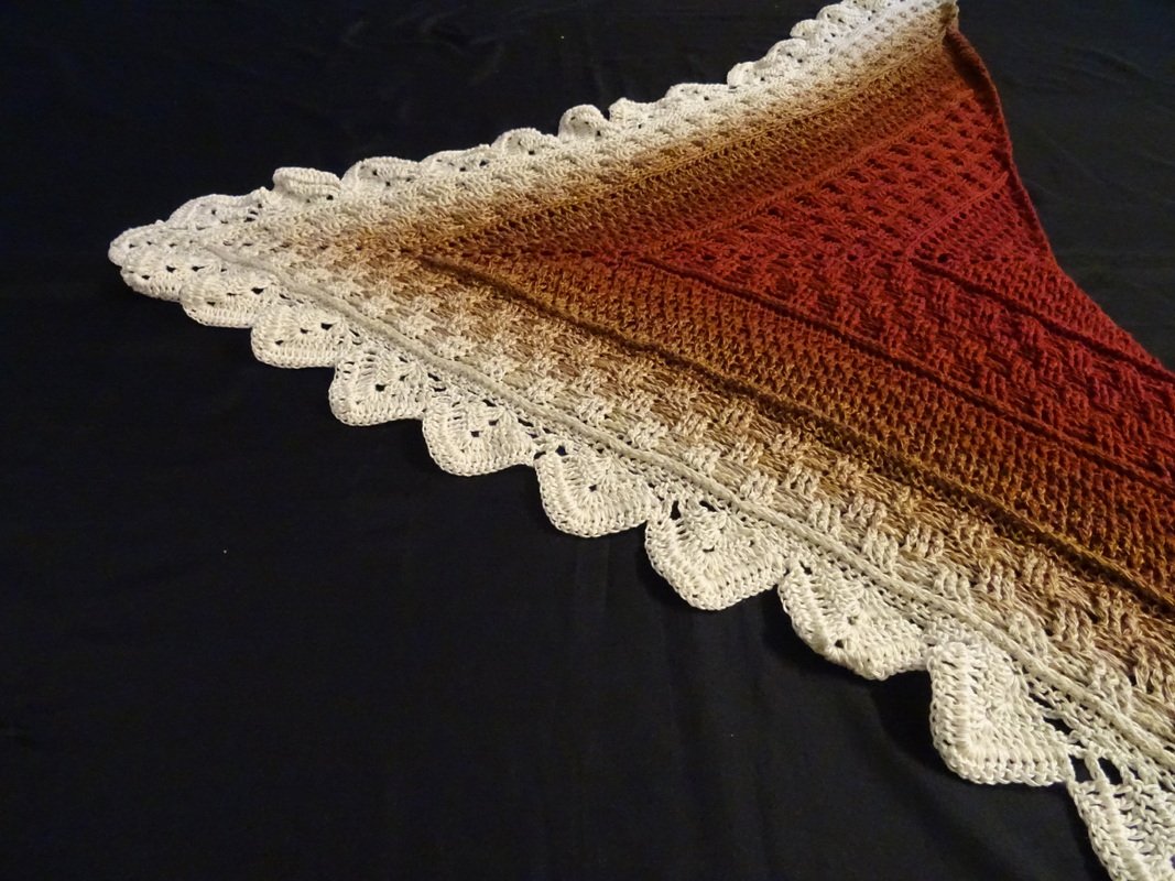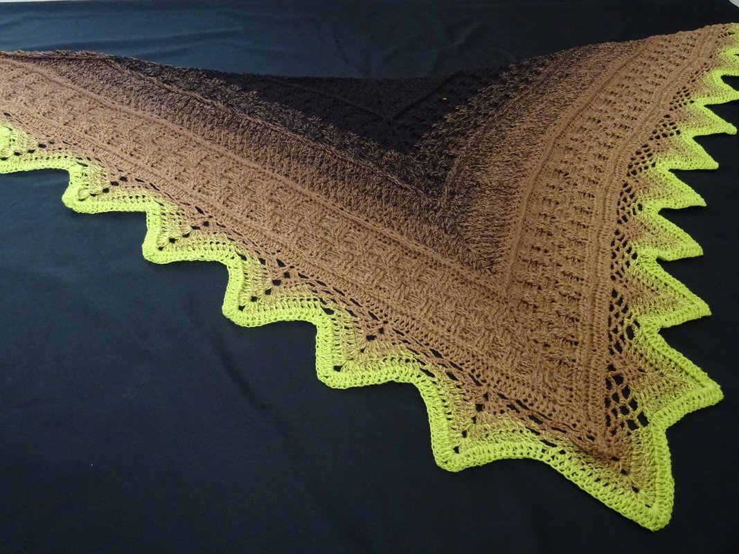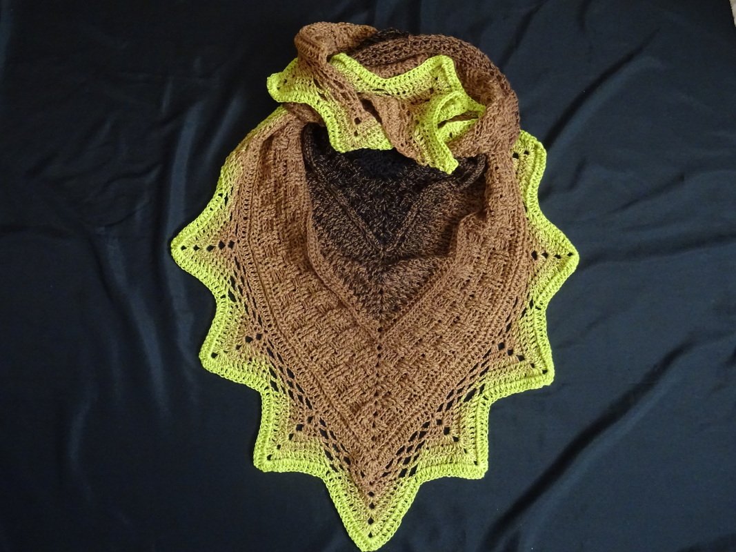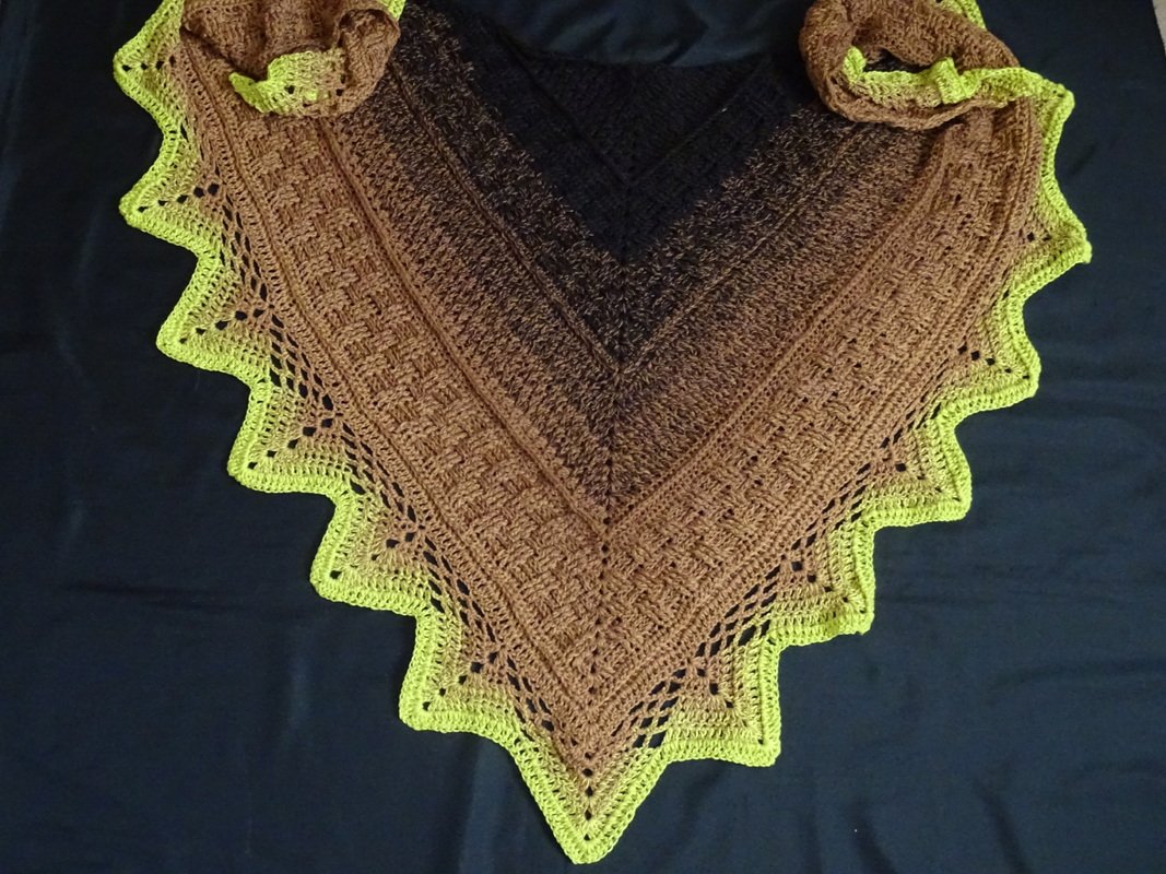 Das Tuch wird mit einem Bobbel / Wolle mit einer Lauflänge von 1000 m gehäkelt.