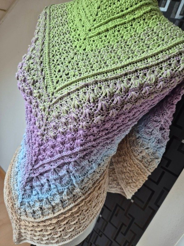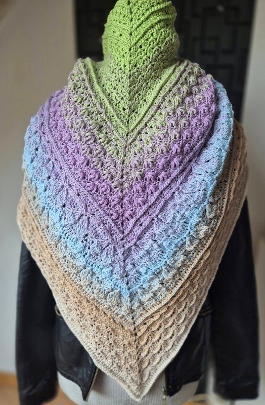 Germoglio ist der erste Teil von „Die 4 Jahreszeiten“ für das Jahresprojekt 2026. Dieses Frühlingstuch kann also nicht nur als Tuch gehäkelt und getragen werden, sondern kann mit den weiteren Teilen