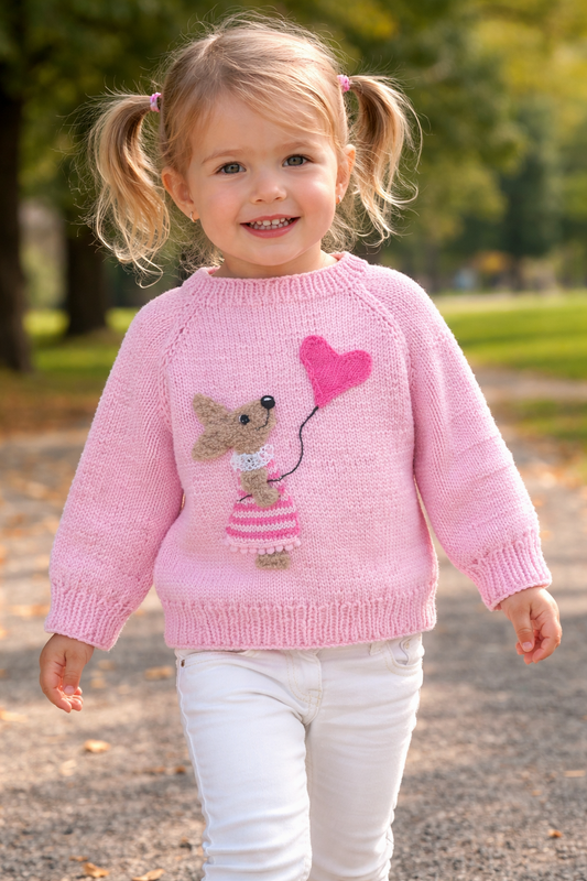 Der süße Hase und das Herz als Luftballon machen den Pullover zum Eyecatcher.