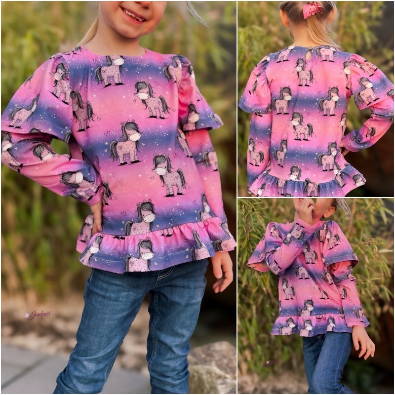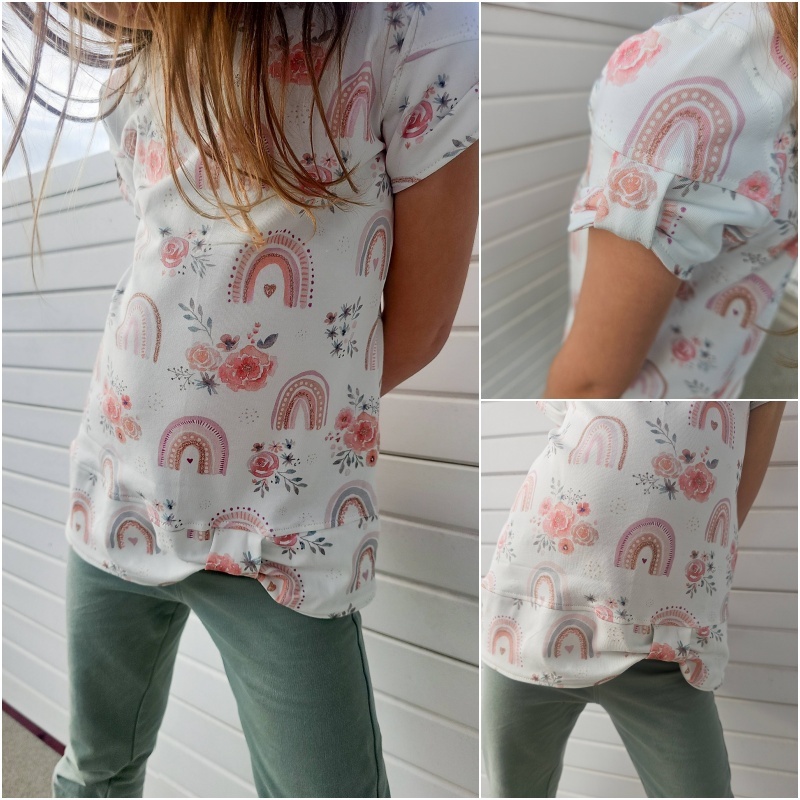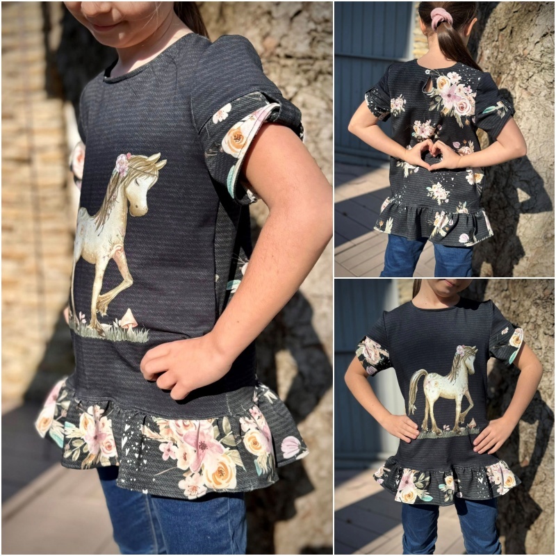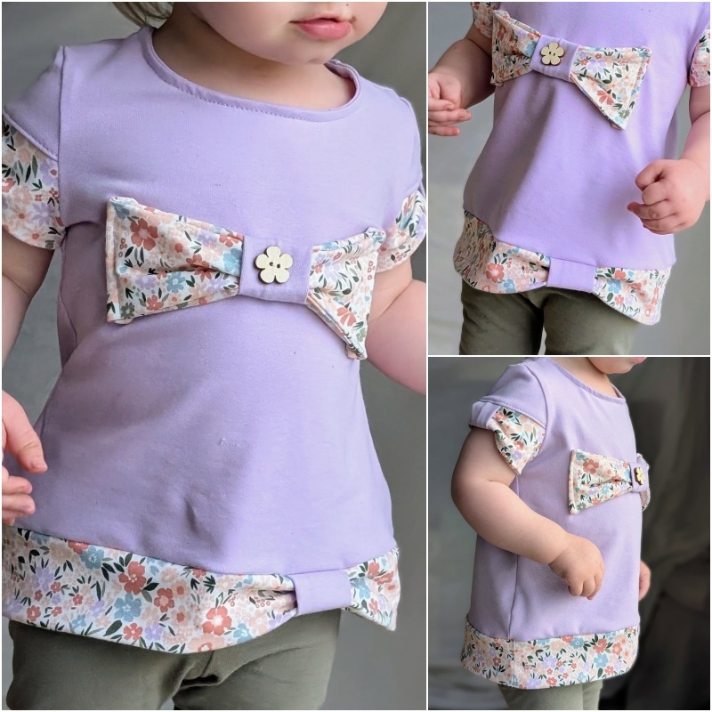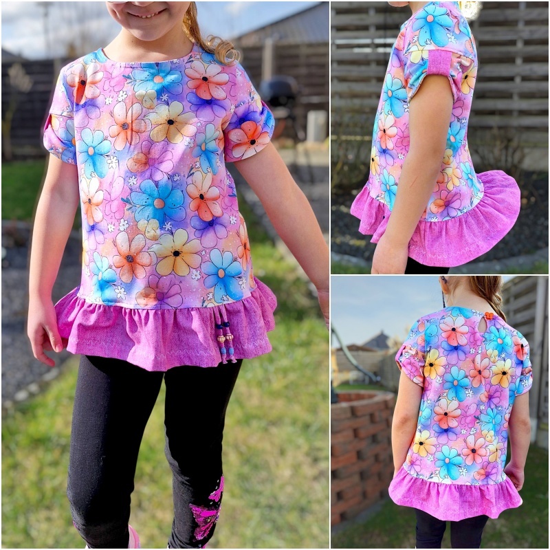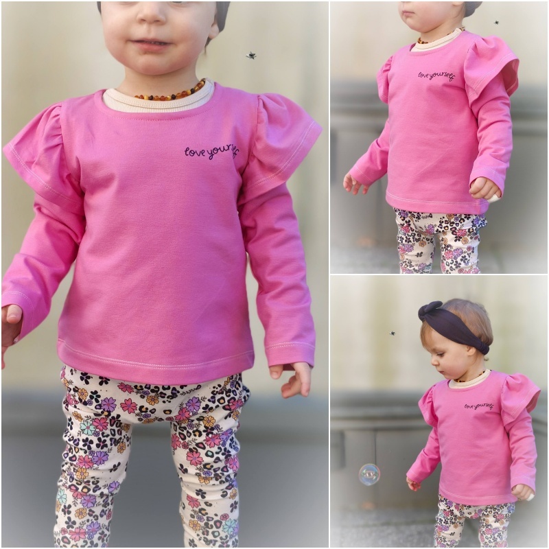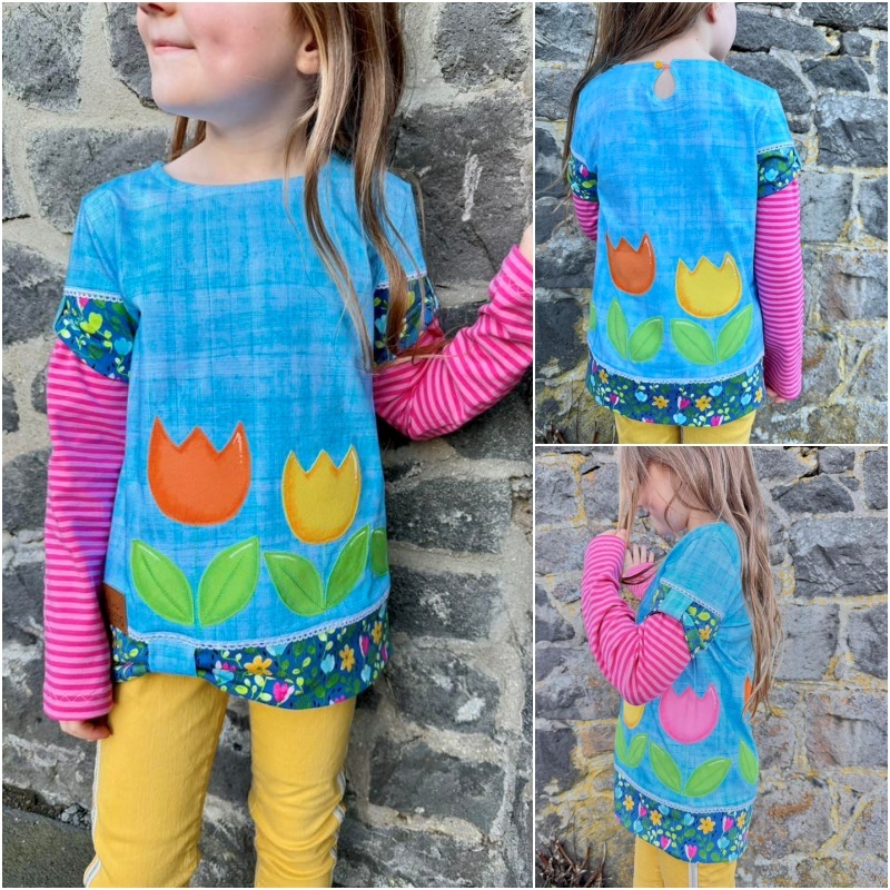 Das Schnittmuster Veilchenzart ist ein herrlich wandelbares Shirt, das einfach zu jeder Gelegenheit passt und dich durch das ganze Jahr begleitet. Trotz seiner unkomplizierten Basicform sorgen die vielen tollen Varianten dafür, dass beim Nähen nie Langeweile aufkommt und immer wieder neue Looks entstehen. Alle Versionen von Veilchenzart haben dabei zwei feste Grundbausteine gemeinsam: Du hast die Wahl zwischen einer geraden oder einer leicht taillierten Seitenführung, und der Halsausschnitt wird immer edel mit einem Beleg sowie einem praktischen Schlüssellochausschnitt am Rückteil verarbeitet. Neben diesen Grundlagen kannst du dein Shirt am unteren Abschluss ganz nach deinem Geschmack gestalten: Wähle zwischen einem klassischen Saum, einem verspielten Schleifenabschluss oder einer romantischen Abschlussrüsche. Auch bei den Ärmeln bist du für jede Jahreszeit gewappnet. Es gibt den normalen Saumärmel in kurz und lang sowie eine spezielle Schleifenergänzung, die du sowohl an kurzen als auch an langen Ärmeln umsetzen kannst. Ein besonderes Highlight sind die drei verschiedenen Flügelärmel-Varianten, die im Schnittmuster enthalten sind. Diese kannst du entweder ganz solo als sommerliche Ärmel nähen oder für einen besonderen Lagen-Look kreativ mit dem langen Ärmel kombinieren.