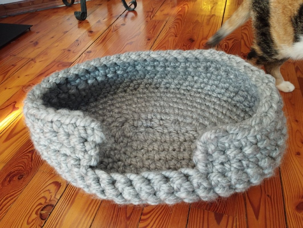 Mit dieser Anleitung kannst du deinen eigenen Katzenkorb selbst häkeln – ganz ohne Häkelnadel! Die Fingerhäkeln-Technik ist auch für Anfänger geeignet und macht besonders viel Spaß.