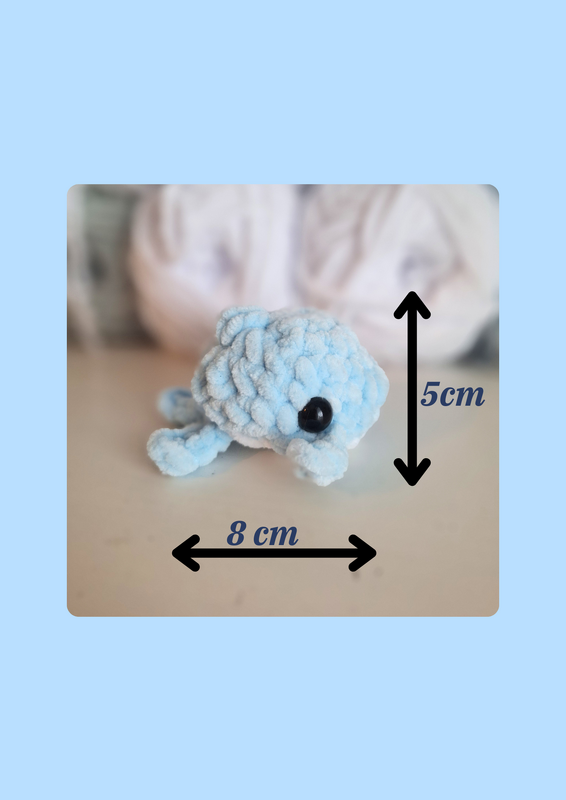 Ihr erhaltet eine kompakte, digitale PDF‑Anleitung für einen 8 cm × 8 cm × 5 cm großen Mini‑Delfin. Die Anleitung enthält sowohl eine ausführliche Schritt‑für‑Schritt‑Version mit vielen Detailfotos sowie eine kompakte Version für erfahrene Häkler:innen, die den Ablauf schnell überblicken wollen. Das Projekt lässt sich in etwa 15 Minuten fertigstellen.