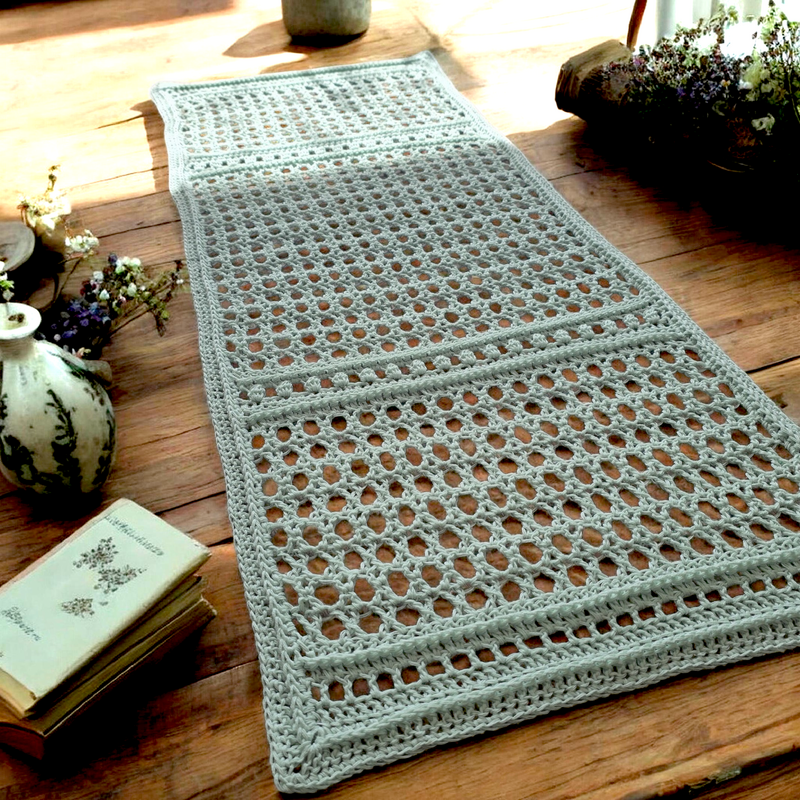 oder 50/50 Garn ist für den Tischläufer geeignet. Dann müsstest du die Größe anpassen und ggf. ein paar Maschen dazu arbeiten.
