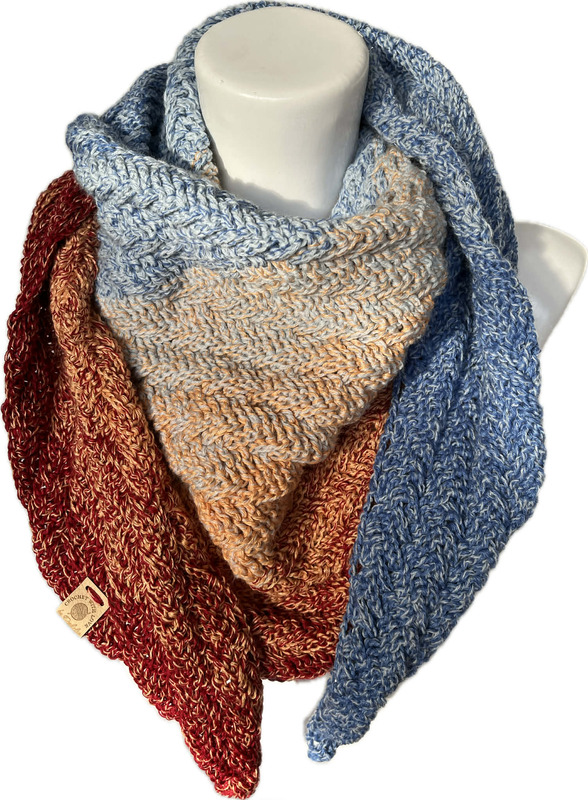 Hier könnt ihr die Anleitung zu meinem gehäkelten Tuch "Saskiora" erwerben, welches eine asynchrone Dreiecksform hat.