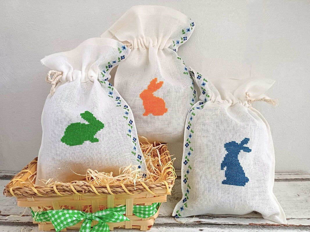 Einfache Hasensilhouetten eignen sich wunderbar, um individuelle Osterdekoration zu sticken. Hier kannst du deiner Kreativität freien Lauf lassen. Wähle Stoffe und Farben, wie du sie liebst, und besticke Handtücher, Geschirrtücher, Geschenksäckchen, Servietten, Tischdecken, Läufer, und und und. Ich habe österliche Eierwärmer daraus genäht. Auf dem festlich gedeckten Tisch zum Osterfrühstück sind sie das I-Tüpfelchen auf dem Osterei. Wenn dich interessiert, wie ich sie komplett mit der Hand genäht habe, schau gerne in meinen Blog https://www.crazypatterns.net/de/blog/4848/kostenlose-naehanleitung-fuer-handbestickte-eierwaermer-aus-leinen-inkl-freebie-fuer-kreuzstich-osterhasen