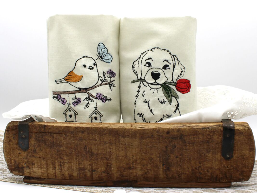 Sie werden 2lagig aus weißem Baumwollstoff genäht, das heißt, die Rückseite der Stickerei liegt im Innern, fein sauber verpackt.