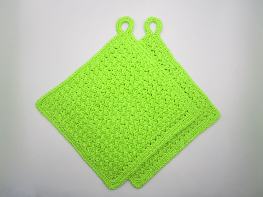 Die Topflappen können in jeder beliebigen Größe gehäkelt werden.