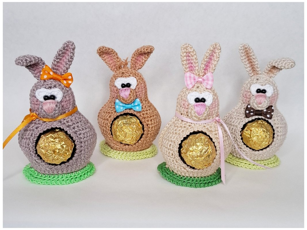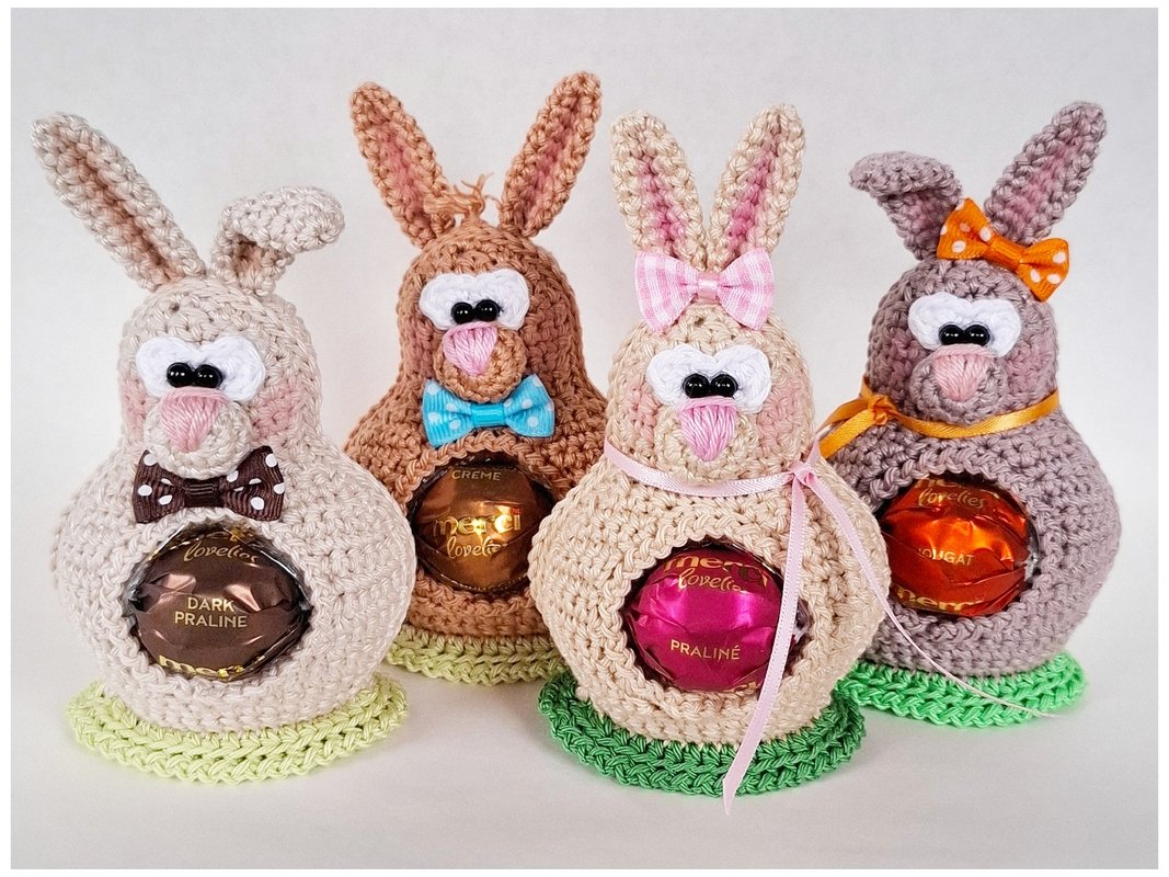 Dann habe ich hier diese süßen Langohren Krümel , Klopfer , Hoppel und Flocke für Dich.