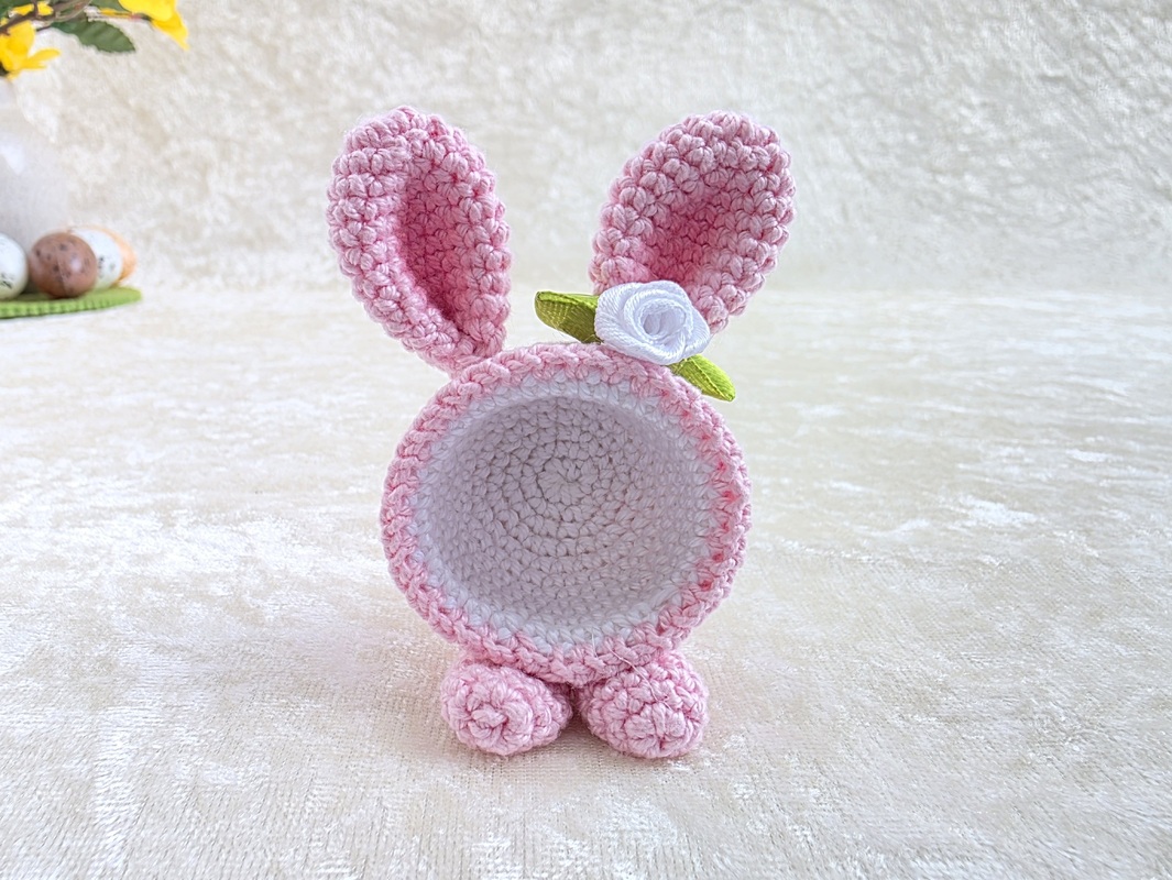 Das fertige Häschen hat (bei Verwendung der angegebenen Wolle) eine Höhe von ca. 8 cm (inklusive Ohren).