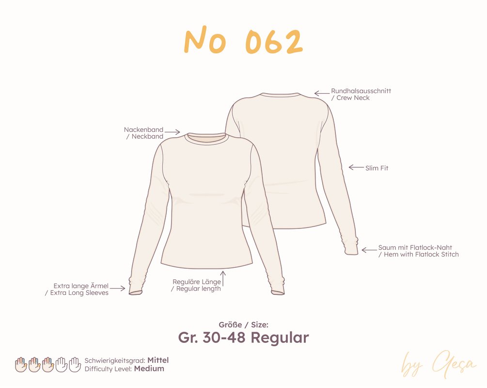 Hinweis: Du kaufst hier das Schnittmuster für den Körpertyp Regular. Jeder Körpertyp wird separat angeboten.