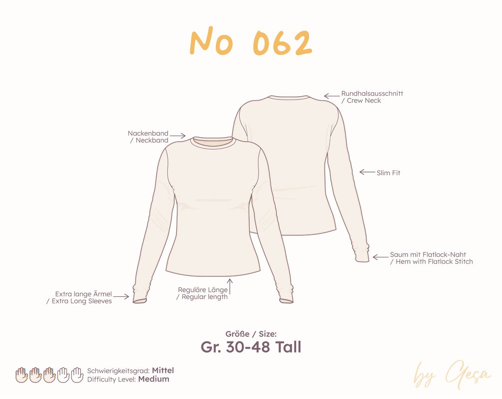 Hinweis: Du kaufst hier das Schnittmuster für den Körpertyp Tall. Jeder Körpertyp wird separat angeboten.