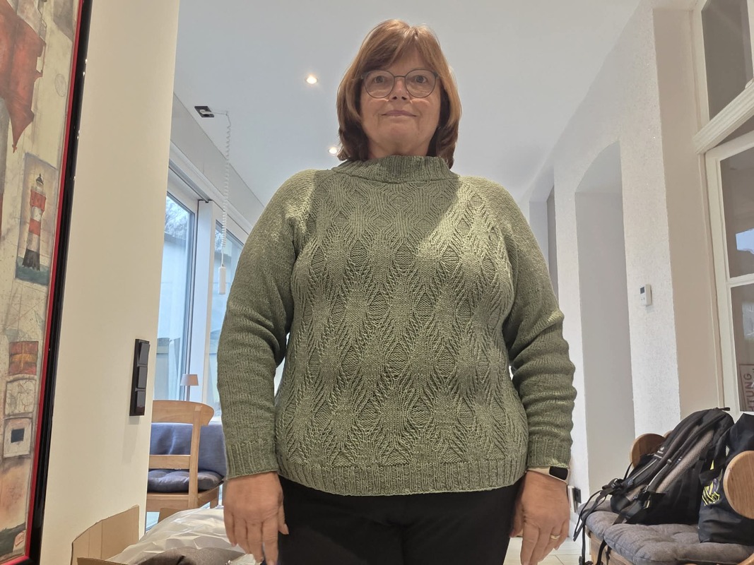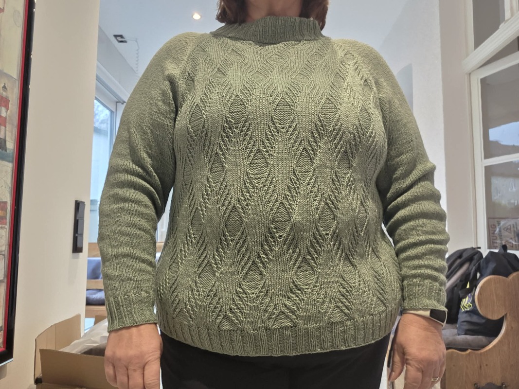 Das heisst, der Pullover wird in Runden von oben nach unten gestrickt und es entstehen keine Nähte vom lästigen Zusammen-Nähen. Außerdem kann durch diese Strickform sehr gut die individuelle Weite und Länge reguliert werden, auch die Arme können den individuellen Bedürfnissen angepasst werden. Die Raglan-Linien unterteilen das Strickwerk in Vorder- und Rückenteil und beide Arme, so das schon beim stricken sehr schnell die Fortschritte sichtbar werden.