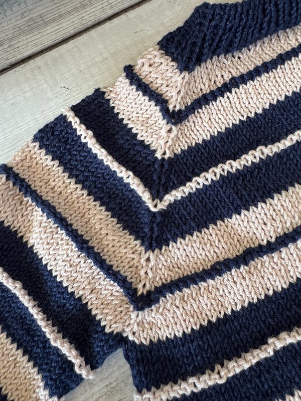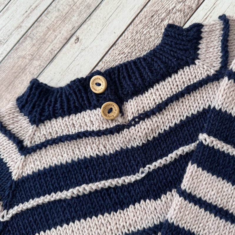 Es handelt sich um einen Pullover für Kleinkinder von Gr. 62 - 104. Ich habe es mit einem Garn aus einer Merino/Baumwolle Mischung gestrickt, was es zu einem perfektem Pullover Frühling oder Herbst macht.