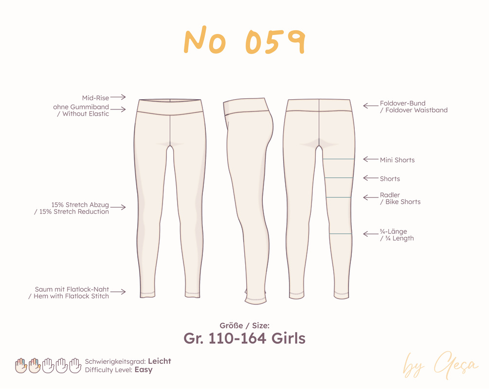 Leggings gehören auch für Kinder einfach zur Grundausstattung – bequem, vielseitig und schnell genäht. Diese Variante ist ein echtes Wohlfühl-Basic: schlicht, aber mit dem gewissen Extra. Statt eines klassischen Gummibunds hat sie einen Foldover-Bund, der einfach umgeschlagen wird. So sitzt die Leggings angenehm, ohne einzuschneiden – perfekt zum Spielen, Toben oder Entspannen.