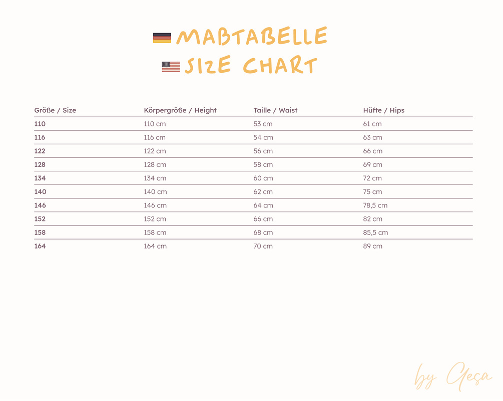 | Größe: | Körpergröße | Taille | Hüfte |