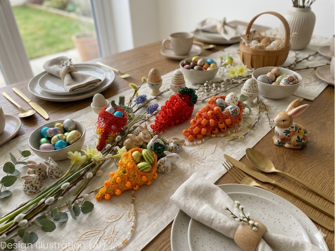 Das Besondere: Die Karotten sind nicht nur Deko, sondern fungieren als kleine Täschchen. Sie bieten Platz für Schokoeier, kleine Naschereien oder Botschaften – perfekt für den Osterstrauch, als Girlande oder als personalisiertes Gastgeschenk.