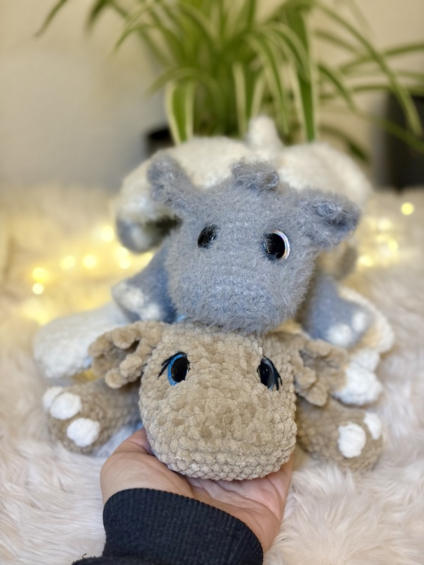 Du kannst Oskar sowohl mit Flauschgarn als auch mit Chenille-Wolle häkeln – je nach Garn entsteht ein ganz unterschiedlicher Look und eine andere Größe.