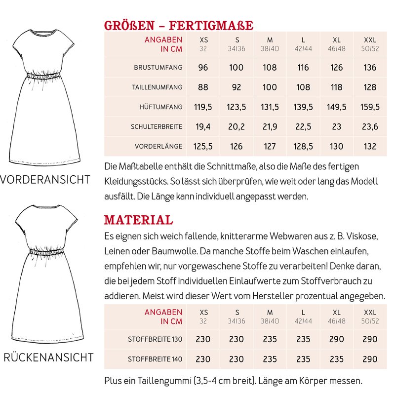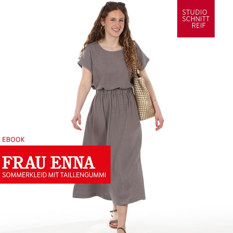 FRAU ENNA ist ein unkompliziertes Sommerkleid. Der kniebedeckte, ausgestellte Rock bietet Bewegungsfreiheit, das locker fallende Oberteil sitzt luftig. Das Kleid ist verschlusslos und einfach überzuziehen. Ein Tunnel mit breitem Taillengummi bringt es sanft auf Figur. Ärmellos mit überschnittenen Schultern und Schrägband-Einfassungen ist FRAU ENNA ideal für warme Tage.