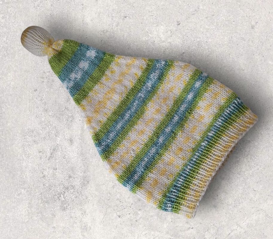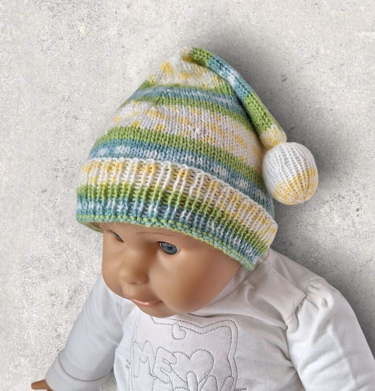 Mit nur ca. 35 - 40 g Wolle ist diese Wichtelmütze ideal zur Resteverwertung. Gestrickt wurde hier mit Bravo Baby Smiles von Schachenmayr. LL ca. 185 m / 50 g. 100 % Polyacryl (waschbar bei 30 Grad).